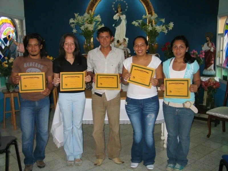 Chuvi Jirosi Martinez (below, left) attended grade school and high school in the rural community of Nuevo Paraíso. His single mother worked very hard to support five children, but she became seriously ill with a brain tumor when Chuvi was in high school. After her hospitalization there was no money left for her children’s continued education. Without financial assistance from FHC and a private donor, Chuvi would have had to quit school after the 9th grade, but instead, he was able to earn his high school diploma and then apply for the FHC scholarship to university. He was awarded the scholarship and successfully earned renewals from 2006 until his graduation from Universidad Tecnologica de Honduras in 2010 with a degree in civil engineering. Chuvi worked for SAN for several years as the manager of their Cielos de Honduras brick factory. He remains grateful for his education in both the Nuevo Paraíso schools and at the university and is a shining example to SAN’s current children of what hard work and a good education can achieve.